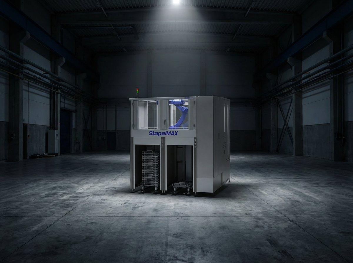 Der StapelMAX ist die konsequente Weiterentwicklung des BetaMAX Systems. Hier können ganze Transportwägen mit Werkstückträgerkörben eingefahren werden. Das System gibt es mit zwei oder für den unterbrechungsfreien Waagenwechsel mit drei Buchten.